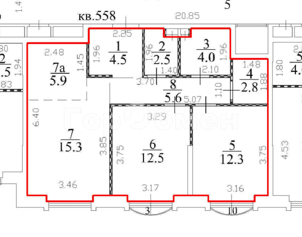 Комнаты: 12.5 12.3 м2