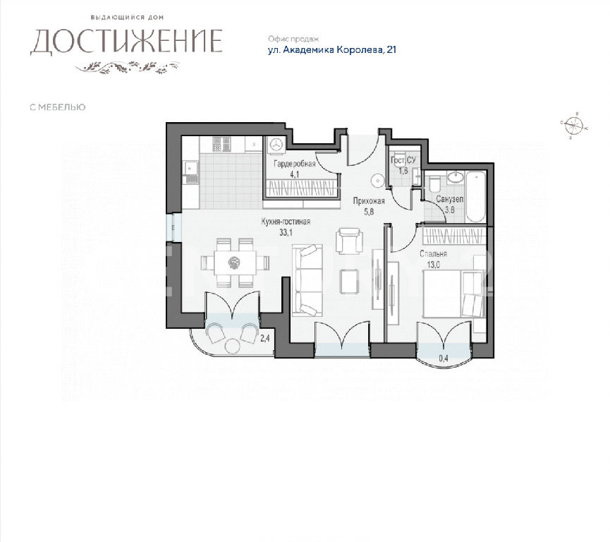 Жилая: 26 м2